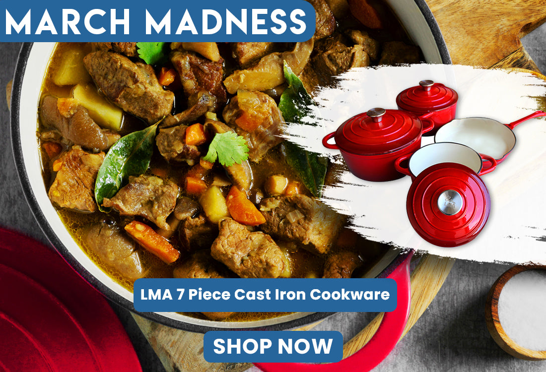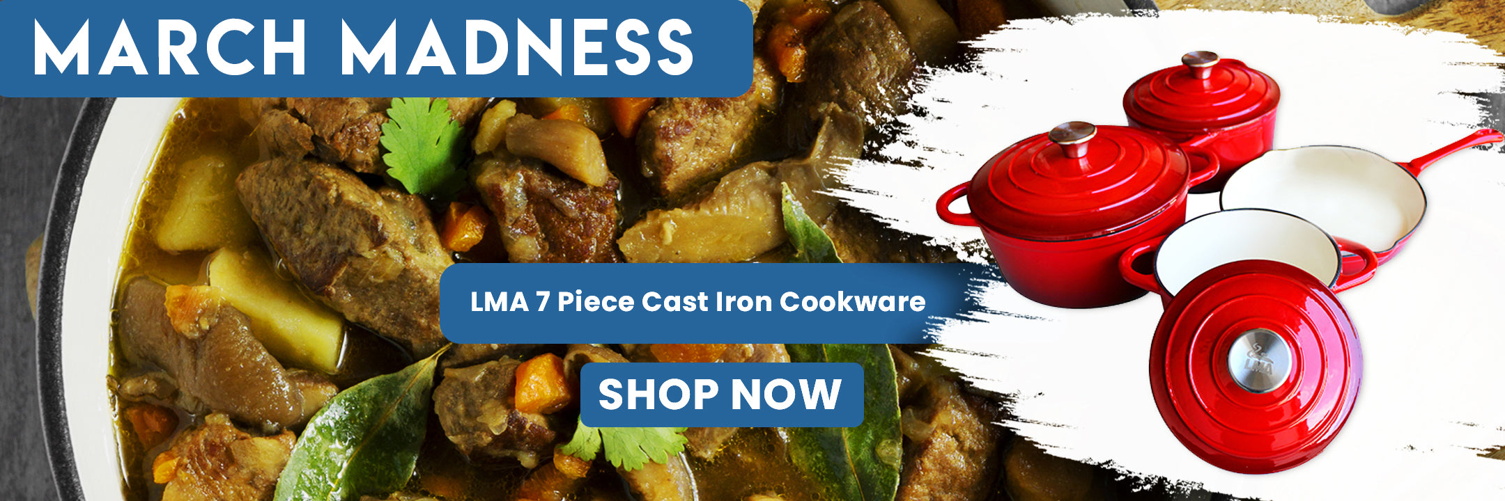 Two-Tone 7 Piece Cast Iron Cookware Set & 2 LMA Serving Spoons