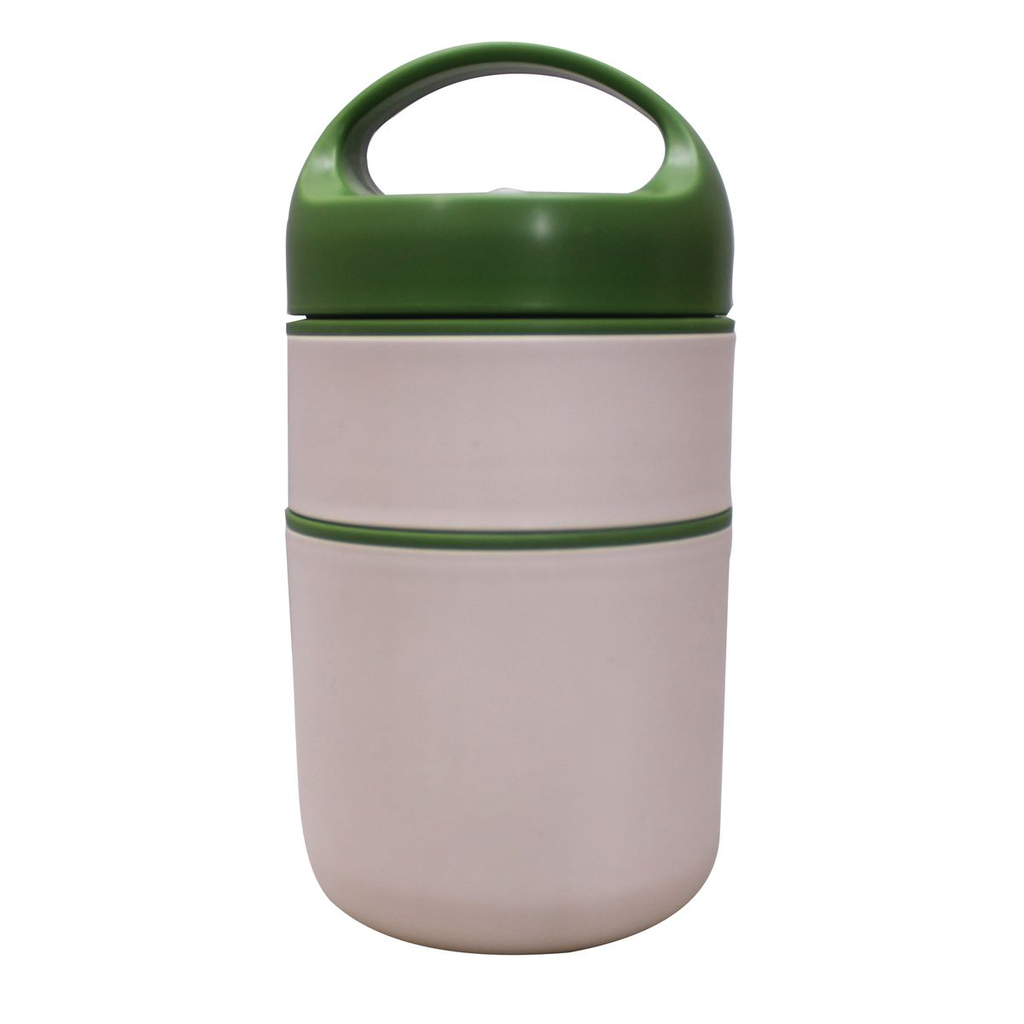 LMA 2 Tier S.Steel Vacuum Insulated Vented Bento Thermos Lunch Boxes 600ml - White, Green